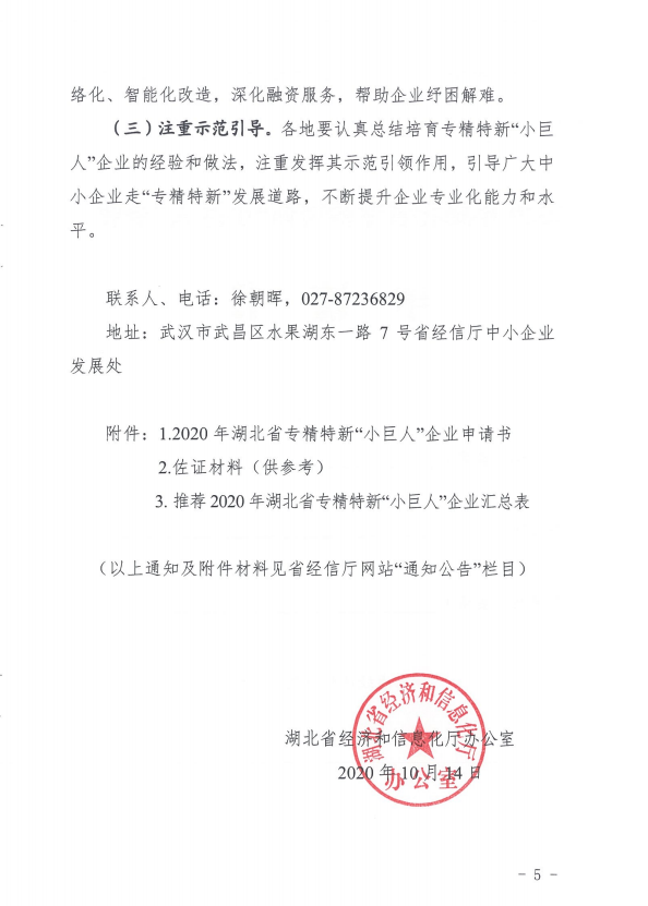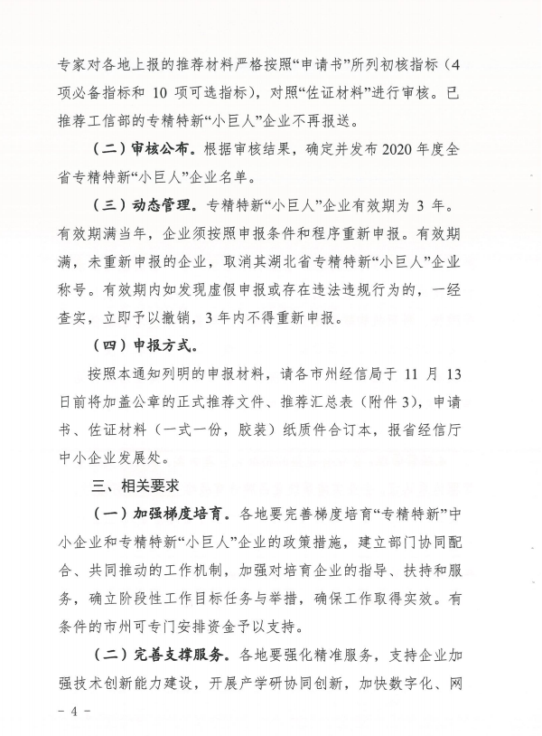 關(guān)于組織申報(bào)2020年湖北省專精特新“小巨人”企業(yè)的通知